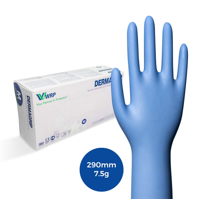 DERMAGRIP® Extended Cuff onderzoekshandschoenen met verlengde manchet vertonen een hogere slijtvastheid en perforatieweerstand dan handschoenen gemaakt van natuurlijk rubber. Deze eigenschappen, gecombineerd met de uitstekende chemische bestendigheid van nitriel tegen een breed scala aan chemicaliën, maken de DERMAGRIP® Extended Cuff onderzoekshandschoenen tot de voor de hand liggende keuze voor bescherming.