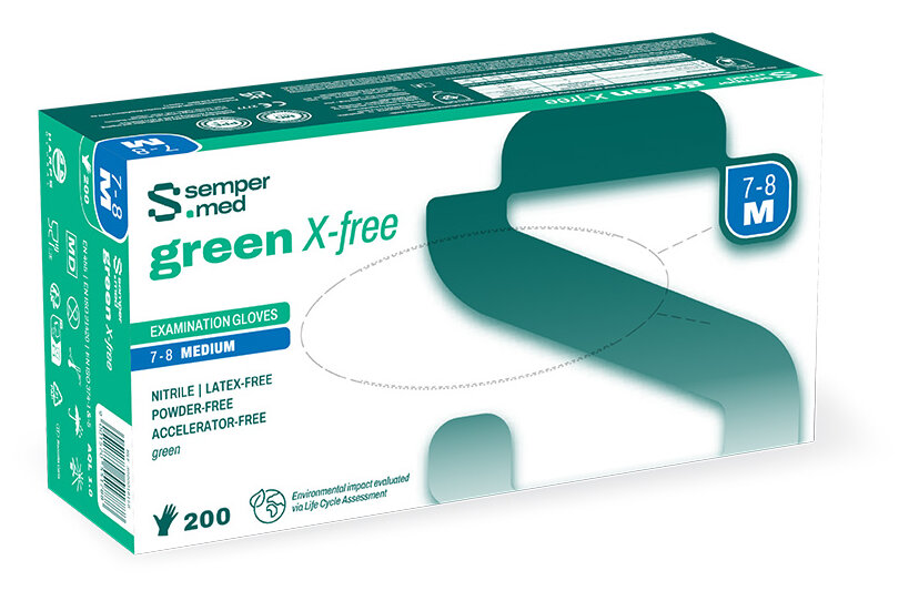 Sempermed® Green X Free nitriele onderzoekshandschoenen combineren huidbescherming met milieubescherming.