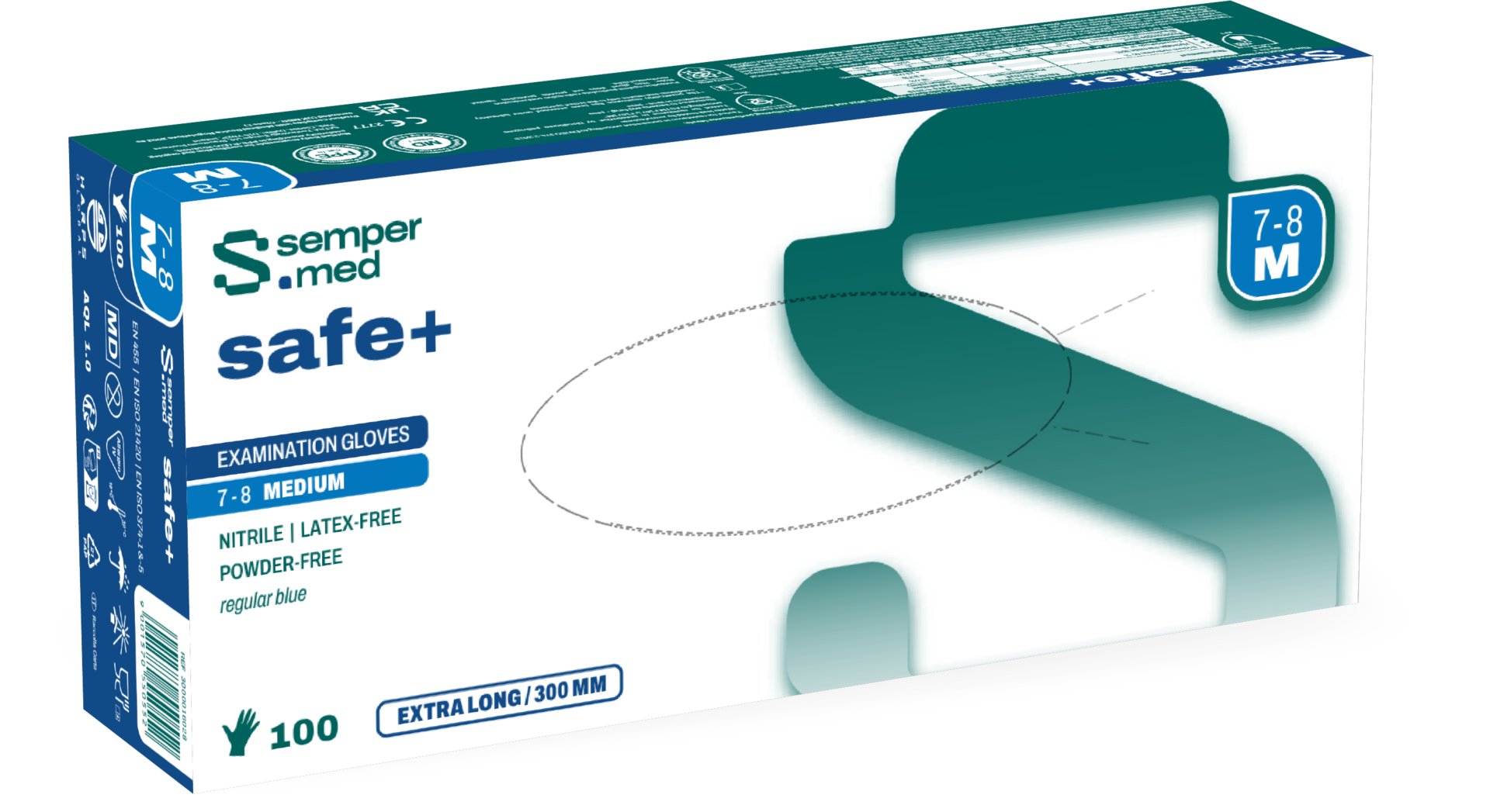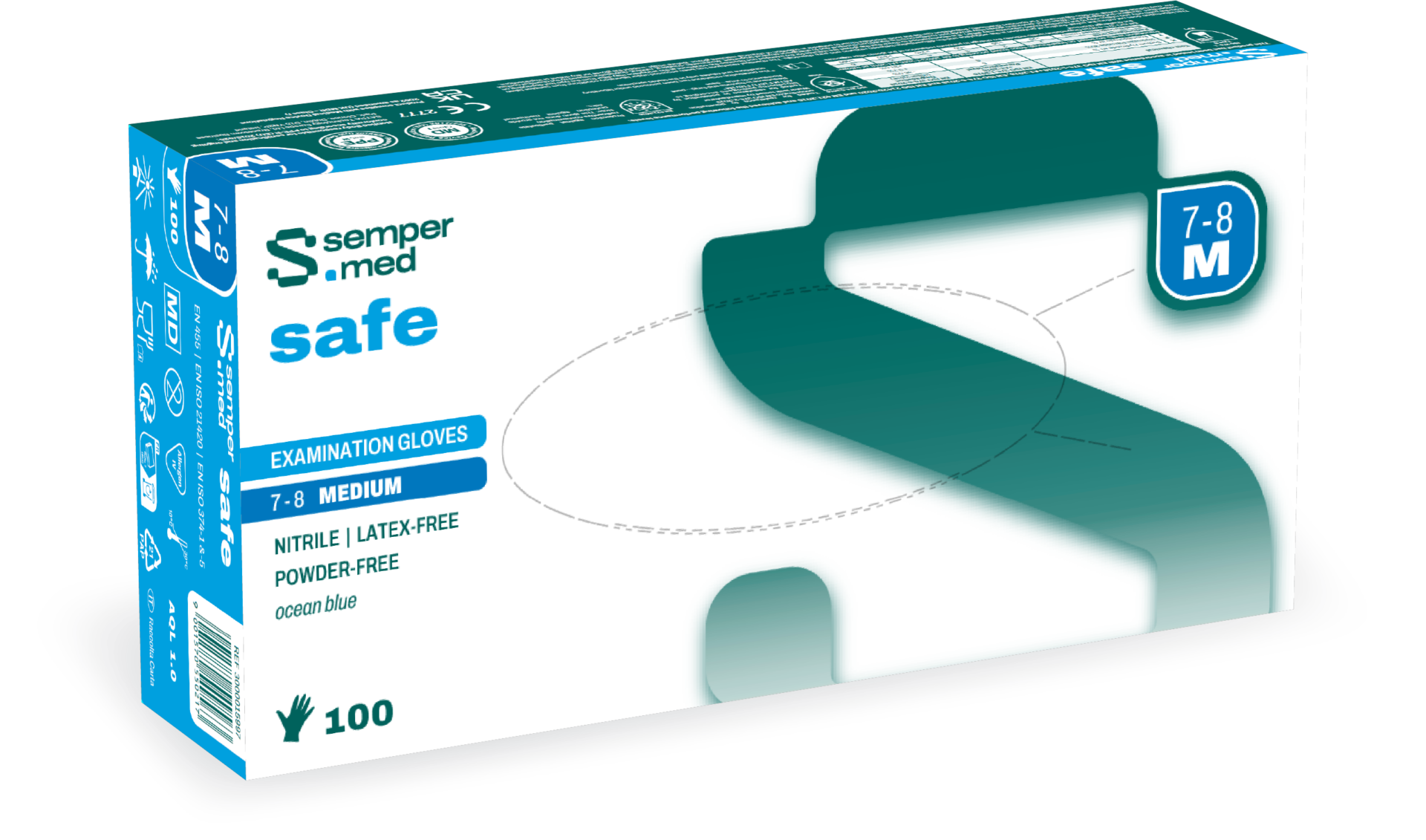Sempermed® Safe handschoenen overtreffen ruimschoots de internationale productnormen en bieden daardoor extra bescherming in risicovolle en kritische situaties. Deze onderzoekshandschoenen hebben een aanzienlijk hogere treksterkte dan vereist in de norm, zijn poedervrij, zacht, flexibel en zeer elastisch. Sempermed® Safe Nitrile handschoenen zijn geschikt voor beide handen en hebben een manchet met rolrand, welke het aantrekken vergemakkelijkt. Tevens hebben de handschoenen getextureerde vingertoppen, hetgeen zorgt voor een betere grip.