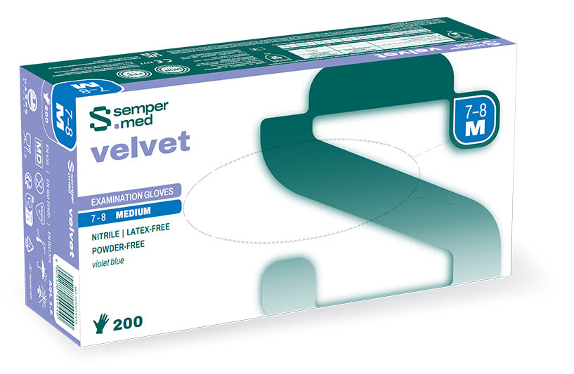 - Sempermed® Velvet: XS-L 200 stuks per dispenser / XL 180 stuks – 10 dispensers per doos