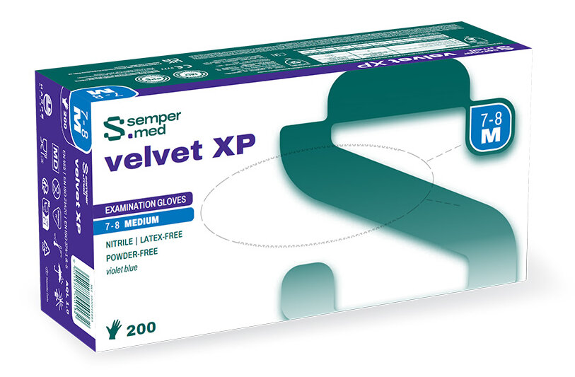 - Sempermed® Velvet XP: XS-L 200 stuks per dispenser / XL 180 stuks – 10 dispensers per doos